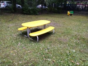 Каждая группа имеет свою прогулочную площадку, оснащенную малыми архитектурными сооружениями и песочницами. Также имеется площадка для занятий физической культурой на свежем воздухе.